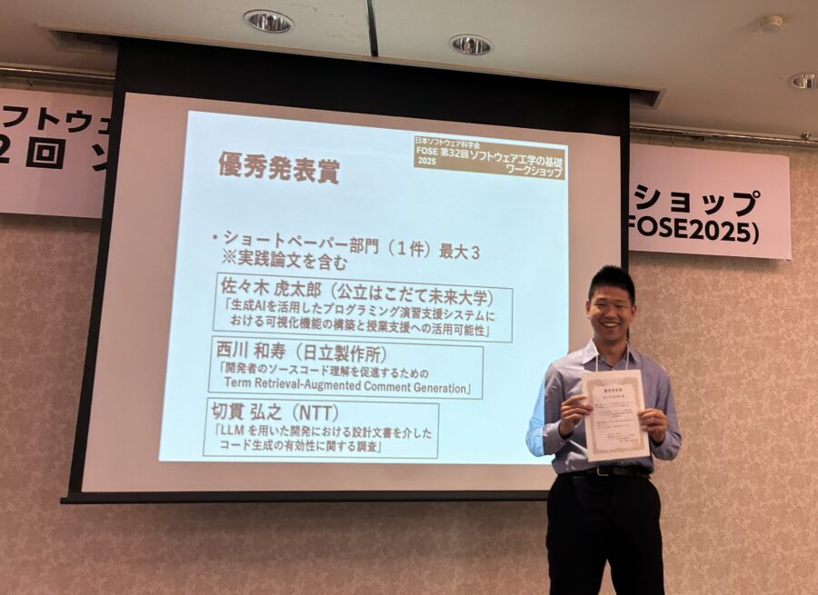 プロジェクト学習「Creative AI」が2025年度人工知能学会において全国大会優秀賞を受賞