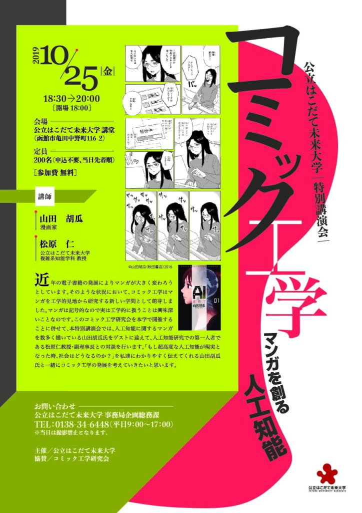 特別講演会「コミック工学: マンガを創る人工知能」を開催(10/25)