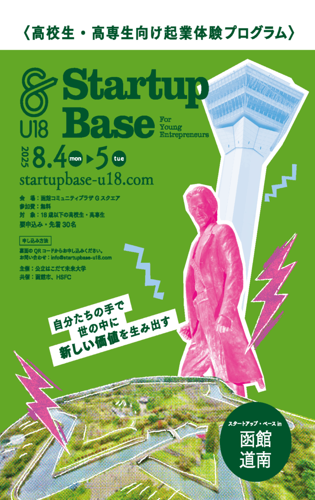本学主催による「高校生・高専生向け起業体験プログラム Startup Base U18 in 函館道南」を8月4日(月)〜8月5日(火)の2日間で実施します。
