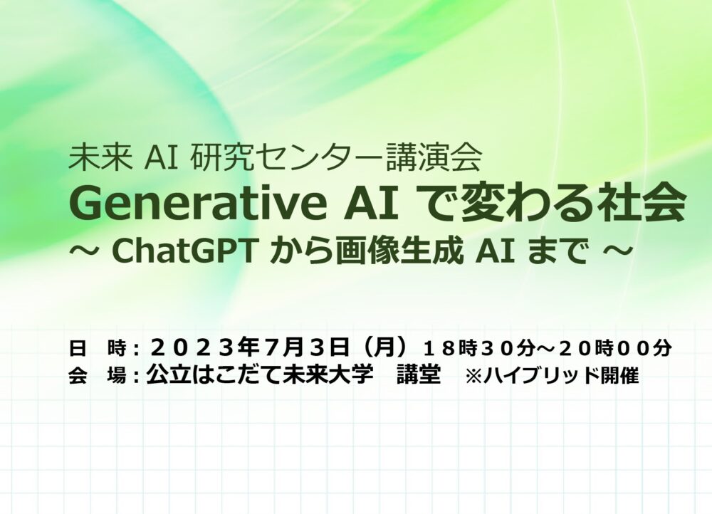 未来AI研究センター講演会「Generative AIで変わる社会 〜 ChatGPTから画像生成AIまで 〜」を開催