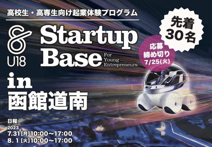 【受講生募集!】「高校生・高専生向け起業体験プログラム Startup Base U18 in函館道南」を開催(7/31-8/1)