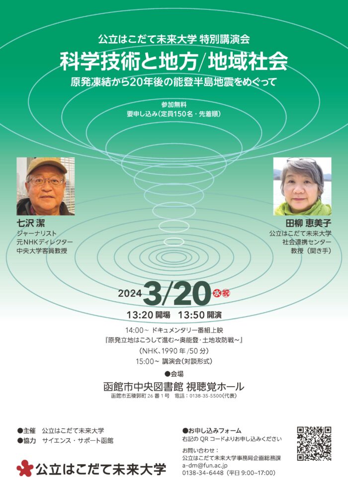 特別講演会「科学技術と地方/地域社会 原発凍結から20年後の能登半島地震をめぐって」3/20開催