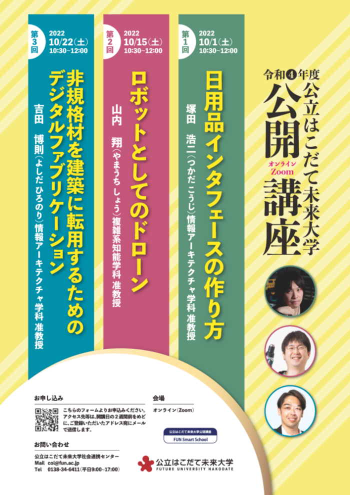 令和4年度公開講座を開講(10/1,10/15,10/22)