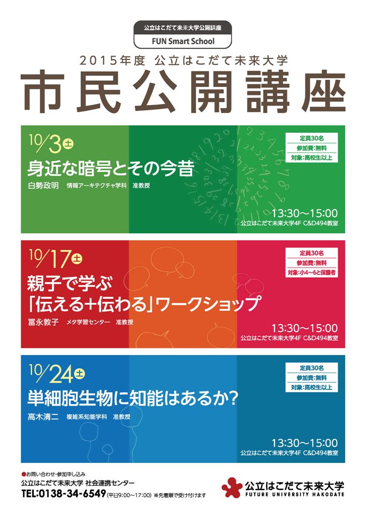 公開講座「身近な暗号とその今昔」を開催(10/3)