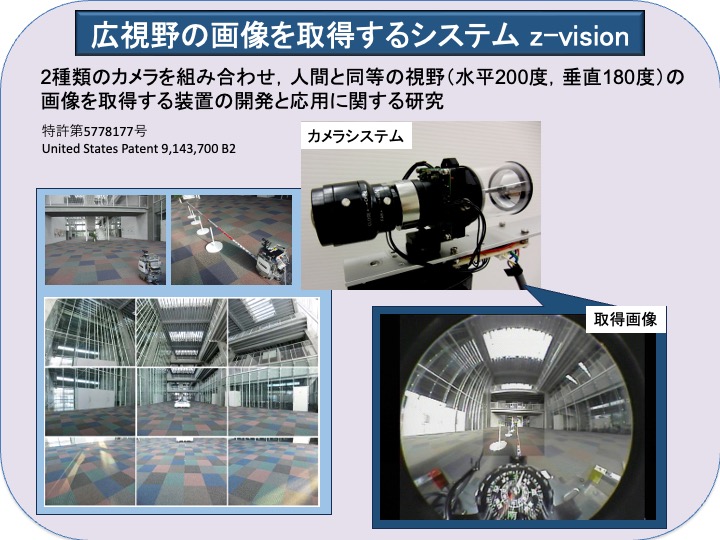 研究概要 2種類のカメラを組み合わせ、人間と同等の視野(水平200度、垂直180…